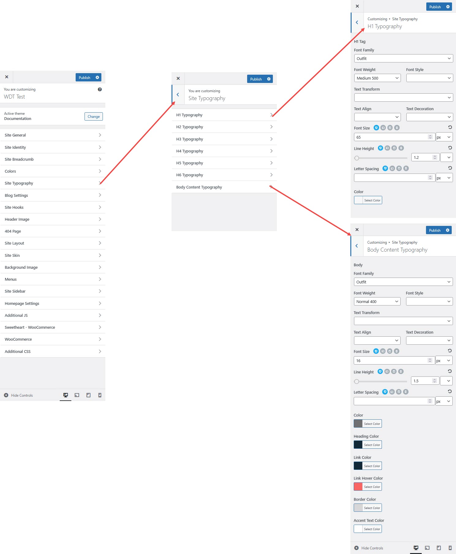 Step 4 : Adjust the desired typography settings for different elements.