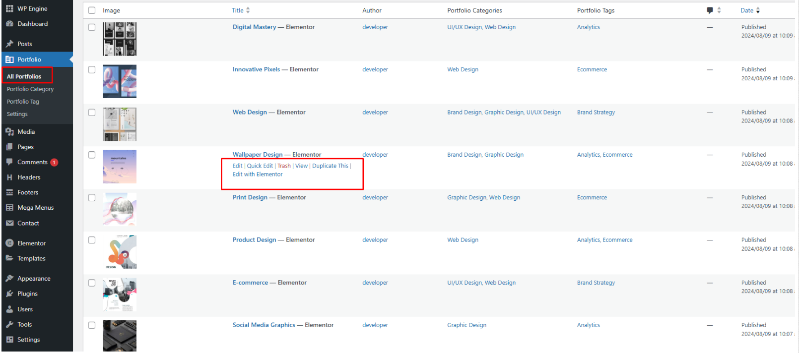 Navigate to WordPress Dashboard → Portfolio → All Portfolios